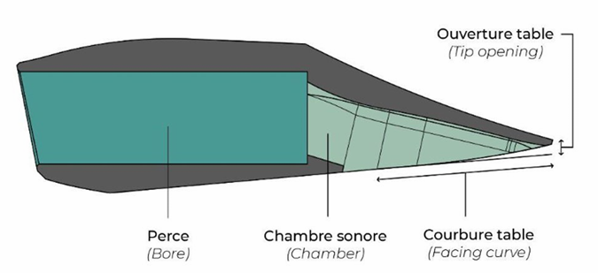 - 斜面較長:聲音更圓潤、發音較柔和、吹奏更穩定舒適。